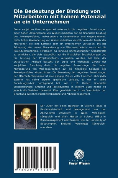 Diese subjektive Forschungsarbeit untersucht die negativen Auswirkungen einer hohen Abwanderung von Wissensarbeitern auf die finanzielle Leistung des Projektportfolios, insbesondere in Unternehmen und Organisationen. Unter hoher Abwanderung von Wissensarbeitern versteht man die Anzahl der Mitarbeiter, die eine Karriere oder ein Unternehmen verlassen. Mit der Erkennung der hohen Abwanderung von Wissensarbeitern versuchen die Projektunternehmen, Strategien zur Bindung hochqualifizierter Arbeitskräfte zu entwickeln, die sich letztendlich auf die finanziellen Entscheidungen und die Leistung der Projektportfolios auswirken werden. Mit Hilfe der statistischen Analyse besteht der erste und wichtigste Zweck der subjektiven Forschung darin, die negativen Auswirkungen der hohen Abwanderung von Wissensarbeitern auf die finanzielle Leistung des Projektportfolios abzuschätzen. Die Bewertung der negativen Auswirkungen der Mitarbeiterfluktuation ist eine gängige Praxis vieler Forscher, aber jeder Experte hat seine eigene spezifische Variable, zu der er seine Forschungsarbeit durchgeführt hat, wie z. B. Kosten, finanzielle Entscheidungen, Effizienz und Projektvielfalt. In diesem Buch haben wir jedoch alle Variablen bewertet. Dies geschieht durch das Verständnis der Beziehung zwischen Mitarbeiterbindung und Arbeitsengagement.