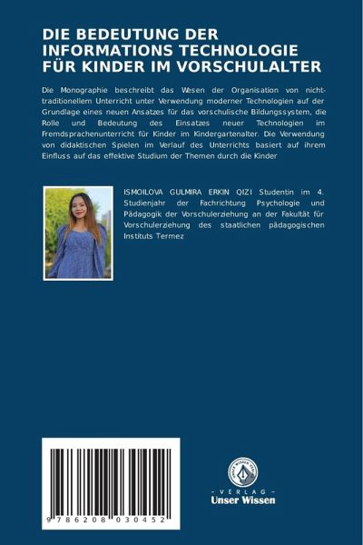 Die Monographie beschreibt das Wesen der Organisation von nicht-traditionellem Unterricht unter Verwendung moderner Technologien auf der Grundlage eines neuen Ansatzes für das vorschulische Bildungssystem, die Rolle und Bedeutung des Einsatzes neuer Technologien im Fremdsprachenunterricht für Kinder im Kindergartenalter. Die Verwendung von didaktischen Spielen im Verlauf des Unterrichts basiert auf ihrem Einfluss auf das effektive Studium der Themen durch die Kinder