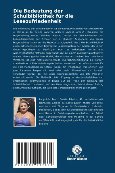 Die Bedeutung der Schulbibliothek für die Lesezufriedenheit von Schülern der 4. Klasse an der Schule Moderna Júnior in Macapá, Amapá - Brasilien. Die Fragestellung lautet: Welchen Beitrag leistet die Schulbibliothek zur Lesezufriedenheit der Schüler der 4. Klasse? Ausgehend von dieser Fragestellung haben wir die Hypothese aufgestellt, dass die Schulbibliothek einen zufriedenstellenden Beitrag zur Lesekompetenz der Schüler der 4. Um diese Hypothese zu bestätigen oder zu widerlegen, wurde eine wissenschaftliche Methodik angewandt, die auf einem qualitativ-quantitativen Ansatz, einem gemischten Modell, deskriptiver Art basiert. Das technische Verfahren ist eine nicht-experimentelle Querschnittserhebung. Es wurden standardisierte Datenerhebungstechniken verwendet, um Informationen für die Forschungsarbeit zu liefern, wobei ein Fragebogen mit offenen und geschlossenen Fragen mit zwei oder mehr Alternativen zur Auswahl verwendet wurde, der mit einer Grundgesamtheit von 108 Personen entwickelt wurde. Die Methodik bietet Zugang zu wissenschaftlichen und empirischen Informationen in Bezug auf die Frage der Relevanz der Schulbibliothek, basierend auf den Forschungsdaten, bietet dieser Beitrag einen Anreiz für Schüler, die Rolle der Schulbibliothek mehr zu schätzen.