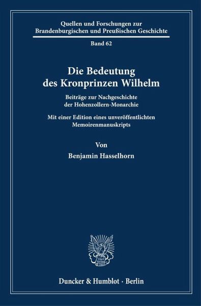 Rezensent Eckart Conze fragt sich, was mit der Publikation eines zwischen 1945 und 1947 entstandenen schmalen Memoirenmanuskripts von Kronprinz Wilhelm von Preußen durch Benjamin Hasselhorn gewonnen ist. Hasselhorn kennt Conze als im Fahrwasser der "Neuen Rechten" schwimmenden Historiker, der gegen die "Verteufelung der letzten deutschen Monarchie" anschreibt und in der Einleitung noch einmal dazu ansetzt, Wilhelm zu marginalisieren. Der Text selbst verändert laut Conze das in den letzten Jahren konturierte Bild des Kronprinzen nicht, enthält judenfeindliche Äußerungen und die altbekannten Rechtfertigungen. Die Veröffentlichung durch Hasselhorn erscheint Conze als geschichtspolitisches Mittel zum Zweck, sich gegenüber einer angeblich ideologisierten Forschung zu positionieren.