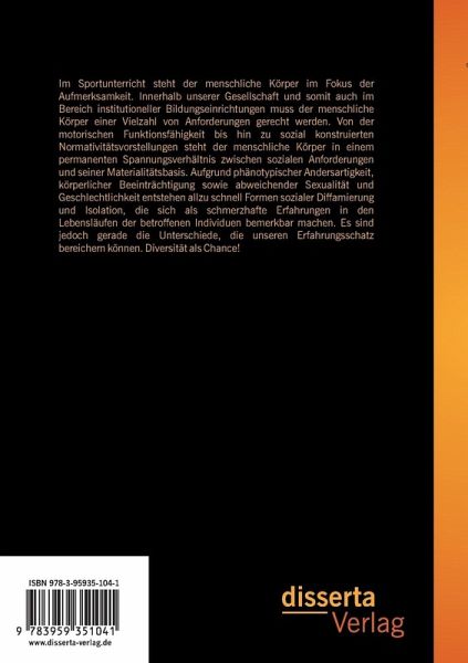 Im Sportunterricht steht der menschliche Körper im Fokus der Aufmerksamkeit. Innerhalb unserer Gesellschaft und somit auch im Bereich institutioneller Bildungseinrichtungen muss der menschliche Körper einer Vielzahl von Anforderungen gerecht werden. Von der motorischen Funktionsfähigkeit bis hin zu sozial konstruierten Normativitätsvorstellungen steht der menschliche Körper in einem permanenten Spannungsverhältnis zwischen sozialen Anforderungen und seiner Materialitätsbasis. Aufgrund phänotypischer Andersartigkeit, körperlicher Beeinträchtigung sowie abweichender Sexualität und Geschlechtlichkeit entstehen allzu schnell Formen sozialer Diffamierung und Isolation, die sich als schmerzhafte Erfahrungen in den Lebensläufen der betroffenen Individuen bemerkbar machen. Es sind jedoch gerade die Unterschiede, die unseren Erfahrungsschatz bereichern können. Diversität als Chance!