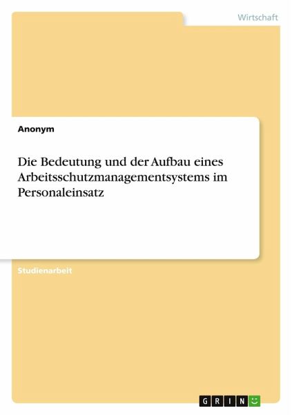 Studienarbeit aus dem Jahr 2015 im Fachbereich BWL - Personal und Organisation, Note: 1,3, , Sprache: Deutsch, Abstract: Ziel der vorliegenden Arbeit ist, die Bedeutung und den Aufbau eines Arbeitsschutzmanagementsystems im Personaleinsatz darzulegen. Dazu werden zunächst im zweiten Kapitel die theoretischen Grundlagen und die Bedeutung dieser Systeme beschrieben. Dies beinhaltet eine Definition von Arbeitsschutzmanagementsystemen und deren Grundprinzipien sowie die Thematik der verschiedenen Konzepte, welche in den vergangenen Jahren erarbeitet wurden. Anschließend wird im dritten Kapitel die Bedeutung eines Arbeitsschutzmanagementsystems aus Unternehmer- und Mitarbeiterperspektive dargestellt, die für die Einführung und Umsetzung dieser Managementsysteme entscheidend sind. Im vierten Kapitel wird der Aufbau eines Arbeitsschutzmanagementsystems anhand seiner Elemente erläutert. Aufgrund der begrenzten Seitenanzahl dieser Arbeit werden die genauen gesetzlichen Vorgaben nicht benannt. Mit einer Zusammenfassung der zuvor benannten Ergebnisse schließt Kapitel fünf die Arbeit ab.Aufgrund der rechtlichen, politischen und wirtschaftlichen Bedingungen, die sich aus der zunehmenden Globalisierung ergeben, wird der Nachweis eines aktiven Arbeitsschutzes für Unternehmen zu einem wichtigen Wettbewerbsvorteil. Jedoch tritt eine Verbesserung des Gesundheitsschutzes und der Arbeitssicherheit nicht nur bei der Einhaltung zusätzlicher Verordnungen ein. Es bedarf auch eines freiwilligen und systematischen Managements für den Arbeits- und Gesundheitsschutz, welches sich unproblematisch und nachhaltig in die Strukturen und Abläufe eines Unternehmens integrieren lässt.Arbeitsschutzmanagementsysteme werden national und international seit Mitte der Neunziger-Jahre als vielversprechende Instrumente zur Verbesserung des Arbeitsschutzes gehandelt und werden immer häufiger in Unternehmen mit Erfolg eingeführt.
