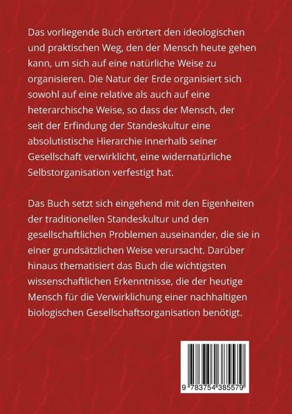 Das Buch Die Befreiung von der Standeskultur - durch den natürlichen dritten Weg setzt sich mit den Möglichkeiten des heutigen Menschen auseinander, eine nachhaltige demokratische Gesellschaftsorganisation zu erreichen, die sich durch eine biologische Legitimation von Unten nach Oben vollzieht.