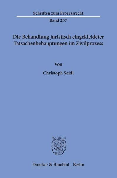 Einleitung1. Kapitel: Klärung der wesentlichen Begrifflichkeiten und Einführung in die ProblematikDie Aufgabenverteilung zwischen den Parteien und dem Gericht hinsichtlich der Beschaffung der Urteilsgrundlagen - Tatsachen und Rechtsbegriffe - Juristisch eingekleidete Tatsachenbehauptungen - Präjudizielle Rechtsverhältnisse - Juristisch eingekleidete Tatsachenbehauptungen vs. Vorträge von präjudiziellen Rechtsverhältnissen - Zusammenfassung der wesentlichen Ergebnisse2. Kapitel: Die Behandlung juristisch eingekleideter Tatsachenbehauptungen im ZivilprozessJuristisch eingekleidete Tatsachenbehauptungen und die Darlegungslast der Parteien - Folgen des Nichtbestreitens juristisch eingekleideter Tatsachenbehauptungen - Anwendung der 288 ff. ZPO - Folgen des Bestreitens juristisch eingekleideter Tatsachenbehauptungen - Bindungswirkungen gegenüber den RechtsmittelinstanzenZusammenfassung der wesentlichen ErgebnisseJuristisch eingekleidete Tatsachenbehauptungen und die Darlegungslast der Parteien - Folgen des Nichtbestreitens juristisch eingekleideter Tatsachenbehauptungen - Anwendung der 288 ff. ZPO - Folgen des Bestreitens juristisch eingekleideter Tatsachenbehauptungen - Bindungswirkungen gegenüber den Rechtsmittelinstanzen - Ersuchen an Rechtsprechung und LiteraturLiteratur- und Stichwortverzeichnis