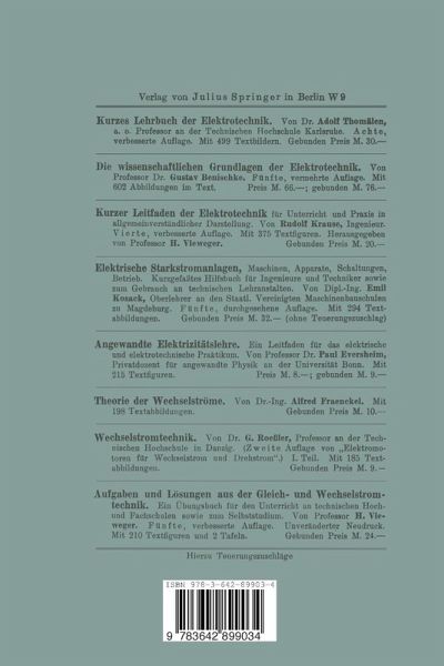 I. Die Erwärmung eines Körpers.- 1. Grundlagen. Allgemeine Erwärmungsgleichung.- 2. Bestimmung der Kenngrößen durch Versuch.- 3. Aussetzende Erwärmung. Überlastbarkeit.- 4. Gang der Erwärmungsberechnung.- 5. Das Ohmsche Gesetz in der Wärmeleitung.- II. Der Aufbau des Widerstandes.- 1. Allgemeines. Auswahl der Leiterart.- 2. Frei aufgehängte Draht- oder Band spulen.- 3. Spulen mit Füllmasse.- 4. Zahlenmäßige Durchrechnung eines Widerstandes.- 5. Widerstandsrahmen.- 6. Porzellanzylinder.- 7. Scheibenspulen.- 8. Paketwiderstände.- 9. Gußeisenroste.- 10. Asbestgitterwiderstände.- 11. Eisendrahtwiderstände für Konstantstrom.- III. Allgemeines über Anlasser.- 1. Einteilung der Anlasser.- 2. Die Anlaßschaltung des Hauptschlußmotors.- 3. Die Anlaßschaltung des Nebenschlußmotors.- 4. Die Anlaßschaltung des Drehstrommotors.- 5. Schutzvorrichtungen.- IV. Das stetige Anlassen.- 1. Der elektrische Vorgang.- 2. Der Anlauf und seine Zeitdauer.- 3. Die Erwärmung des Widerstandes.- 4. Berechnungsverfahren für beliebige Lastkennlinie.- 5. Die Energieumsetzung beim Anlassen.- V. Grobstufiges Anlassen bei Gleichstrommotoren.- 1. Grundlagen. Einführung der Maschinenkennlinie.- 2. Die Berechnung der Widerstandsstufung.- 3. Der Anlauf und seine Zeitdauer.- 4. Die Erwärmung des Widerstandes.- 5. Anlauf bei veränderlicher Last.- VI. Grobstufiges Anlassen bei Drehstrommotoren.- 1. Der Heylandkreis.- 2. Die Berechnung der Widerstandsstufung.- 3. Der Anlauf und seine Zeitdauer.- 4. Die Erwärmung des Widerstandes.- 5. Anwendung auf ein Zahlenbeispiel.- VII. Bremswiderstände.- 1. Allgemeines. Einteilung.- 2. Der Nebenschlußmotor.- 3. Der Hauptschlußmotor.- 4. Der Drehstrommotor.- VIII. Feldregler für gegebene Erregerspannung.- 1. Einleitung.- 2. Die Berechnung derStufung bei Selbsterregung.- 3. Die Berechnung der Stufung bei Fremderregung.- 4. Die Reglergröße.- 5. Der Verlust im Regler.- IX. Feldregler für gegebenen Erregerstrom.- 1. Die Berechnung der Stufung.- 2. Die Reglergröße.- 3. Der Verlust im Regler.- X. Feldregler für Motoren.- XI. Hauptstromregler für Motoren.- XII. Lichtregler.- 1. Die Berechnung der Stufung.- 2. Die Reglergröße.- 3. Der Verlust im Regler.- XIII. Besondere Regleranordnungen.- 1. Regler für großen Regelbereich.- 2. Grob- und Feinregelung.- 3. Regler mit verbesserter Materialausnützung.- 4. Stufenschalter für große Ströme.- XIV. Der Feldunterbrecher.- 1. Die Berechnung des Widerstandes.- 2. Die Berechnung der magnetischen Feldenergie.- XV. Quellenverzeichnis.