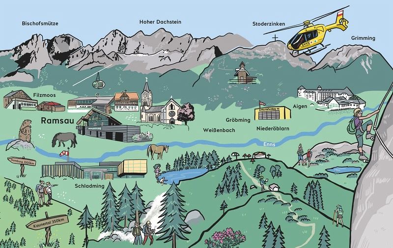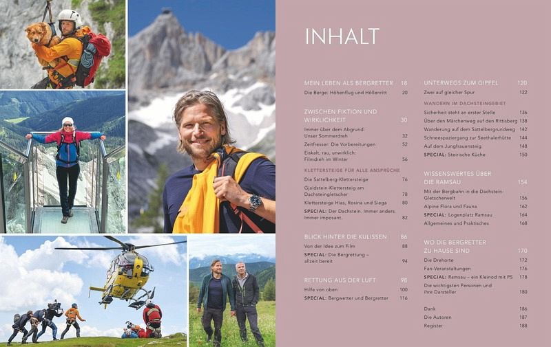 Tauchen Sie ein in die reale und fantastische Welt der Berge, erleben Sie hautnah Geschichten und Abenteuer an den schönsten Orten der "Bergretter" und freuen Sie sich auf das reich bebilderte Buch zur Kultserie im ZDF, das zugleich einen spannenden Einblick in die Arbeit der echten Bergretter gibt. Sebastian Ströbel, bestens bekannt als Leitstellenleiter Markus Kofler, erzählt von seinem Leben in der Dachstein-Region, in der er sich mittlerweile zu Hause fühlt. Heri Eisl, der als erfahrener Bergretter hinter den Kulissen für die Sicherheit sorgt, berichtet von spektakulären Rettungsaktionen, aber auch von Dramen, die sich am Berg abgespielt haben. So ergibt sich - im Wechsel von Filmwelt und realer Welt - ein umfassendes Porträt der großartigen Bergwelt rund um Ramsau, die die beiden auf einer gemeinsamen Wanderung erkunden. Wir erfahren vieles über die alpine Welt um den Dachstein, die als UNESCO-Weltnatur- und Kulturerbe ausgezeichnet wurde, ihre spektakuläre Natur und auch darüber, warum Bergretter nie den Glauben an die Menschen und den Sinn ihrer Arbeit verlieren. Vorschläge für Wanderungen und Klettertouren in verschiedenen Schwierigkeitsgraden machen Lust auf einen Aufenthalt in der Region und und an den Original-Schauplätzen der Serie. Gemeinsam mit den realen und fiktionalen Crews am Berg sind die Bergmassive selbst die eigentlichen Helden des Buchs und werden in ihrer Schönheit und Faszination meisterhaft in Szene gesetzt.
