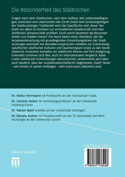 Fragen nach dem Städtischen, nach dem Aufbau, den Lebensbedingungen, Kultur(en) und Lebensstilen der (Groß-)Stadt sind Gründungsfragen der Stadtsoziologie. Traditionell wird das Spezifische und 'Neue' der Stadt vor allem im Kontrast zur vormodernen Gesellschaft und/oder ländlichen Gemeinschaft profiliert. Doch worin bestehen die Besonderheiten von Städten heute? Der Band bietet einen Überblick, der die Auseinandersetzung mit grundlegenden Entwicklungslinien der Stadtsoziologie verknüpft mit aktuellen empirischen Arbeiten zur Entwicklung spezifischer städtischer Kulturen und Quartierstypen sowie zu den heute vielerorts virulenten Kämpfen um städtische Räume und ihre Aneignung. Einerseits scheinen sich hier, auch im internationalen Vergleich, klare Linien städtischer Entwicklungen abzuzeichnen, andererseits wird aber auch deutlich, dass der sozialwissenschaftliche Gegenstand 'Stadt' heute - wie bereits in seinen Anfängen - sehr kontrovers diskutiert wird.