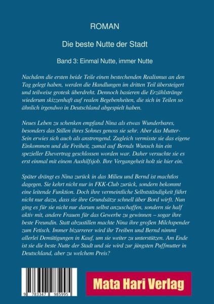 Dies ist der dritte Teil über die verrückte Liebe zwischen Nina, einer sehr vollbusigen, jungen Frau und dem 30 Jahre älteren Bernd, einem typischen Scheidungsopfer. Nachdem die ersten beide Teile einen bestechenden Realismus an den Tag gelegt haben, werden die Handlungen im dritten Teil übersteigert und teilweise grotesk überdreht. Dennoch basieren die Erzählstränge wiederum skizzenhaft auf realen Begebenheiten, die sich in Teilen so oder so ähnlich irgendwo im besten Deutschland aller Zeiten abgespielt haben.Nachdem Nina in den Klub zurück gekehrt war, ging es nicht nur darum selbst anzuschaffen, sondern aktiv dabei zu helfen, andere Frauen für das Gewerbe zu gewinnen. Sogar ihre beste Freundin bringt sie dazu, als Hure zu arbeiten. Statt abzustillen machte Nina ihre großen Milchspender zum Fetisch nicht nur für ihre Freier sondern auch für sich selbst. Schnell gibt sie ihre Vorsätze auf und gerät tiefer in einen Strudel voller skurriler Ereignisse, die sie selbst mit herbeiführt, aber bald nicht mehr kontrollieren kann. Am Ende ist sie zwar die beste Nutte der Stadt und führt eigenes Bordell, wo sie als 24-Jährige zur Puffmutter wird. Aber ihren Erfolg auskosten kann sie nicht, denn die Zuhälter lassen nicht locker Wie lange kann sie den Schein ihrer Unabhängigkeit bewahren? Trotzig macht sie weiter, unterstützt von Bernd.