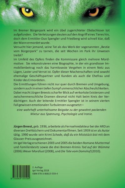 Im Bremer Bürgerpark wird ein übel zugerichteter Obdachloser tot aufgefunden. Die Verletzungen deuten auf den Angriff eines Tieres hin, doch dem Ermittler-Duo Spengler und Friedberg wird schnell klar, daß der Mann ermordet wurde.