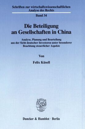 Die Volksrepublik China hat sich in den letzten Jahren trotz einer dem eigentlich entgegenstehenden Ideologie zunehmend zu einer reglementierten Marktwirtschaft entwickelt, die wegen des riesigen Marktes und der niedrigen Lohnkosten für ausländische Investoren interessante Möglichkeiten eröffnet. Der Verfasser untersucht die Beteiligung an einer Gesellschaft als die »Endstufe des China-Engagements«, die sorgfältiger Überlegungen bedarf. Dabei stehen steuerliche Überlegungen im Vordergrund.