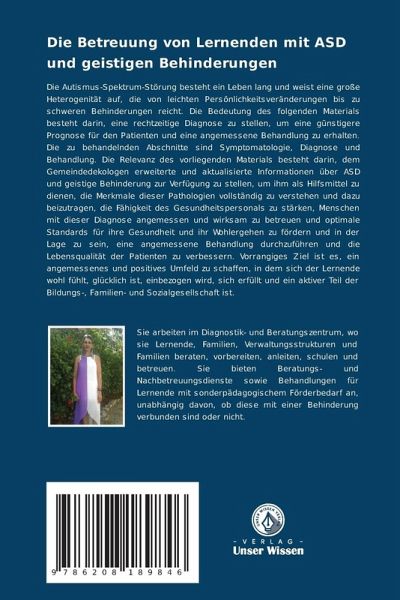 Die Autismus-Spektrum-Störung besteht ein Leben lang und weist eine große Heterogenität auf, die von leichten Persönlichkeitsveränderungen bis zu schweren Behinderungen reicht. Die Bedeutung des folgenden Materials besteht darin, eine rechtzeitige Diagnose zu stellen, um eine günstigere Prognose für den Patienten und eine angemessene Behandlung zu erhalten. Die zu behandelnden Abschnitte sind Symptomatologie, Diagnose und Behandlung. Die Relevanz des vorliegenden Materials besteht darin, dem Gemeindedekologen erweiterte und aktualisierte Informationen über ASD und geistige Behinderung zur Verfügung zu stellen, um ihm als Hilfsmittel zu dienen, die Merkmale dieser Pathologien vollständig zu verstehen und dazu beizutragen, die Fähigkeit des Gesundheitspersonals zu stärken, Menschen mit dieser Diagnose angemessen und wirksam zu betreuen und optimale Standards für ihre Gesundheit und ihr Wohlergehen zu fördern und in der Lage zu sein, eine angemessene Behandlung durchzuführen und dieLebensqualität der Patienten zu verbessern. Vorrangiges Ziel ist es, ein angemessenes und positives Umfeld zu schaffen, in dem sich der Lernende wohl fühlt, glücklich ist, einbezogen wird, sich erfüllt und ein aktiver Teil der Bildungs-, Familien- und Sozialgesellschaft ist.