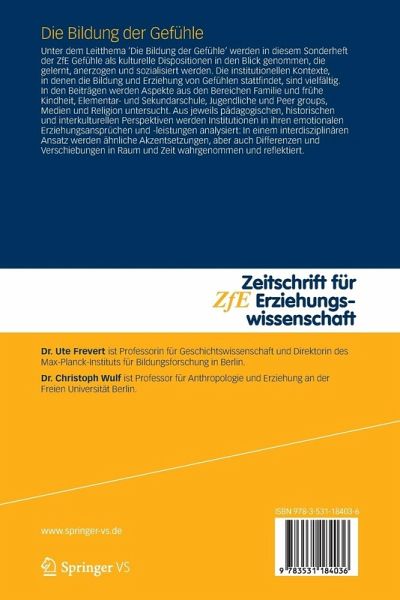 Unter dem Leitthema 'Die Bildung der Gefühle' werden in diesem Sonderheft der ZfE Gefühle als kulturelle Dispositionen in den Blick genommen, die gelernt, anerzogen und sozialisiert werden. Die institutionellen Kontexte, in denen eine solche Bildung und Erziehung von Gefühlen stattfinden, sind vielfältig. In den Beiträgen werden Aspekte zu Bereichen wie Familie und frühe Kindheit, Elementar- und Sekundarschule, Jugendliche und Peer groups, Medien und Religion untersucht. Aus jeweils pädagogischen, historischen und interkulturellen Perspektiven werden Institutionen in ihren emotionalen Erziehungsansprüchen und -leistungen analysiert: im interdisziplinäre Ansatz werden ähnliche Akzentsetzungen, aber auch Differenzen und Verschiebungen in Raum und Zeit wahrgenommen und reflektiert.