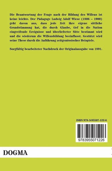 Die Beantwortung der Frage nach der Bildung des Willens ist keine leichte. Der Pädagoge Ludwig Adolf Wiese (1806-1900) geht davon aus, dass jede Zeit ihre eigene sittliche Grundstimmung hat, die durch Glaube, tief in die Nation eingreifende Ereignisse und überlieferter Sitte bestimmt wird und die wiederum die Willensbildung beeinflusst. Gestützt wird seine These durch die Anführung zeitgenössischer Beispiele.