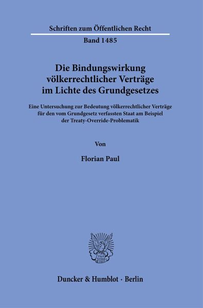 Völkerrechtlichen Verträgen wird heute international eine hohe Bedeutung zugemessen. Gleichwohl sind die Regelungen des Grundgesetzes dahingehend allenfalls rudimentär ausgestaltet. Vor diesem Hintergrund untersucht die Arbeit, welche Stellung den völkerrechtlichen Verträgen im nationalen Normgefüge zukommt und inwieweit dies die Handlungsmöglichkeiten von Exekutive und Legislative beeinflusst. Hatte doch das Bundesverfassungsgericht noch im Jahr 2015 - durch inhaltlichen Rekurs auf seine Entscheidung des Jahres 1957 - konstatiert, völkerrechtliche Verträge stünden einfachen Gesetzen gleich und damit sogleich den zwischenzeitlich aufgekommenen völkerrechtsfreundlicheren Auffassungen eine Absage erteilt. Ausgehend von diesem Befund analysiert die Arbeit die vorgebrachten Ansichten und schließt sodann mit der Entwicklung eines Lösungsmodells, das anhand eines fallgruppenorientierten Verfahrenskonzepts die praktische Konkordanz zwischen den widerstreitenden Verfassungsgrundsätzen anstrebt.
