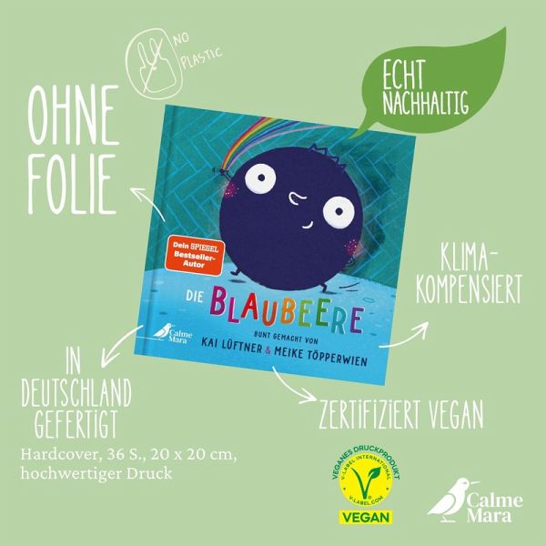 Dieses Buch wurde vegan, regional, klimakompensiert und nachhaltig produziert (Drucklack auf Wasserbasis, ÖKO-Farben, zertifiziertes Papier, kompostierbare ECO-Schutzkaschierung).