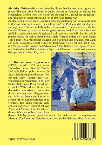 Konrad Yona Riggenmann was born in 1952 and finished his actively Catholic youth only in Augsburg major seminary. With a thesis about Bertolt Brecht he became a teacher in public school, staging plenty and publishing a dozen plays for school and amateur theater in the style of his prizewinning 1994 emigrant drama New Heimat. Graduated in 2001 on John Dewey's impact in Brazilian school, he in 2002 won the right to teach cross-free at a Munich court. In three own books plus one co-authored by Richard L. Rubenstein, Irving Greenberg, Cardinal Lehmann and Pope Benedict, the Flechtheim Prize awardee researched how to learn Jew-hatred. After emigration in 2011, a genetic test in 2012 evinced his DNAncestors among those Portuguese Marranos who back then viewed the Promised Land where he now wrote this book: in Brazil. K.Y. Riggenmann nasceu em 1952 e concluiu a sua mocidade católica ativa só no seminário maior. Tornou-se professor de escola pública com tese de admissão sobre Bertolt Brecht e publicou 12 peças para teatro escolar e amador, seu drama New Heimat sobre emigrantes suábios e judeus sendo premiado em 1994. Pós-graduado em 2001 com tese sobre a influência de John Dewey na escola brasileira, em 2002 um tribunal muniquense após 7 anos lhe permitiu ensinar sem cruz. Honrado pela União Humanista com o Prêmio Flechtheim, em três livros próprios e um junto com Irving Greenberg, Richard Rubenstein, Cardeal Lehmann e Papa Benedito ele inquiriu como se aprende o ódio aos judeus. Emigrado em 2011, em 2012 um teste genético provou seus DNAncestrais entre aqueles marranos portugueses que na época buscaram a Terra Prometida onde ele escreveu o livro: no Brasil. K.Y. Riggenmann kam 1952 zur Welt und beschloss seine aktiv katholische Jugend erst im Augsburger Priesterseminar. Mit einer Arbeit über Bertolt Brecht wurde er Volksschullehrer, publizierte 12 Stücke für Schul- und Amateurtheater wie sein 1994 preisgekröntes Emigrantenstück New Heimat. Promoviert in 2001 über John Deweys Wirkung in Brasiliens Schule, bekam er 2002 in München nach sieben Prozessjahren das Recht, kreuzfrei zu lehren. In drei Büchern plus einem zusammen mit u.a. Richard L. Rubenstein, Irving Greenberg, Kardinal Lehmann und Papst Benedikt untersuchte der Flechtheim-Preisträger, wie Judenhass gelernt wird. Nach Emigration in 2011 erwies ein Gentest in 2012 seine DNAhnen unter jenen portugiesischen Marranos, die das Gelobte Land dort suchten wo er dieses Buch schrieb: in Brasilien.
