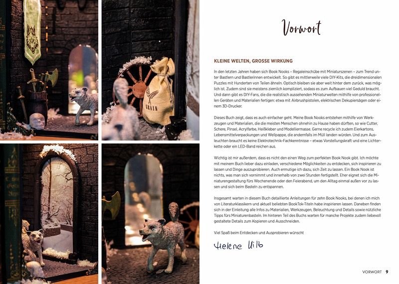 Ein gemütliches Kaminzimmer, eine Stadt im Wald oder Alices Wunderland: Mithilfe dieses Buchs entstehen zauberhafte Welten im Miniaturformat, Inspiriert von Literaturklassikern und beliebten BookTok-Bestsellern. Bücherfans finden darin zehn Projekte mit detailreicher Anleitung sowie Tipps und Kniffe, um ihr Book Nook zum Leben zu erwecken. Zum Einsatz kommen dabei oft Verpackungsreste und Naturmaterial. Bonus: Liebevolle Details zum Ausschneiden.