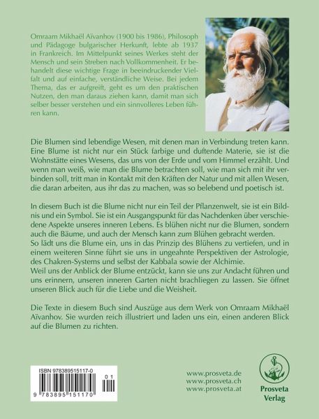 Die Blumen sind lebendige Wesen, mit denen man in Verbindung treten kann. Eine Blume ist nicht nur ein Stück farbige und duftende Materie, sie ist die Wohnstätte eines Wesens, das uns von der Erde und vom Himmel erzählt. Und wenn man weiß, wie man die Blume betrachten soll, wie man sich mit ihr verbinden soll, tritt man in Kontakt mit den Kräften der Natur und mit allen Wesen, die daran arbeiten, aus ihr das zu machen, was so belebend und poetisch ist.In diesem Buch ist die Blume nicht nur ein Teil der Pflanzenwelt, sie ist ein Bildnis und ein Symbol. Sie ist ein Ausgangspunkt für das Nachdenken über verschiedene Aspekte unseres inneren Lebens. Es blühen nicht nur die Blumen, sondern auch die Bäume, und auch der Mensch kann zum Blühen gebracht werden. So lädt uns die Blume ein, uns in das Prinzip des Blühens zu vertiefen, und in einem weiteren Sinne führt sie uns in ungeahnte Perspektiven der Astrologie, des Chakren-Systems und selbst der Kabbala sowie der Alchimie.Weil uns der Anblick der Blume entzückt, kann sie uns zur Andacht führen und uns erinnern, unseren inneren Garten nicht brachliegen zu lassen. Sie öffnet unseren Blick auch für die Liebe und die Weisheit.Die Texte in diesem Buch sind Auszüge aus dem Werk von Omraam Mikhaël Aïvanhov. Sie wurden reich illustriert und laden uns ein, einen anderen Blick auf die Blumen zu richten.