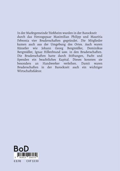 In der Marktgemeinde Türkheim wurden in der Barockzeit durch das Herzogspaar Maximilian Philipp und Mauritia Febronia vier Bruderschaften gegründet. Die Mitglieder kamen auch aus der Umgebung des Ortes. Auch waren Künstler wie Johann Georg Bergmüller, Dominikus Bergmüller, Ignaz Hillenbrand usw. in den Bruderschaften. Die Bruderschaften hatte durch Stiftungen, Pacht und Spenden ein beachtliches Kapital. Dieses konnten sie besonders an Handwerker verleihen. Damit waren Bruderschaften in der Barockzeit auch ein wichtiger Wirtschaftsfaktor.