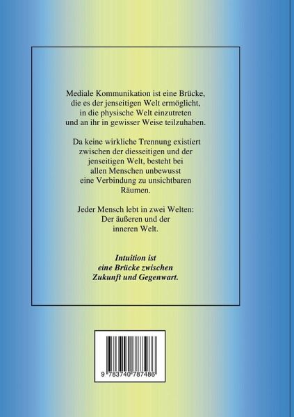 Mediale Kommunikation ist eine Brücke, die es der jenseitigen Welt ermöglicht, in die physische Welt einzutreten und an ihr in gewisser Weise teilzuhaben. Das Buch befasst sich mit der medialen Verbindung zu anderen Ebenen, dem spirituellen Aufstiegsprozess und dem Tod als Übergang zu anderen Ebenen. Auch die Entwicklung des Lichtkörpers und die energetischen Zusammenhänge werden berücksichtigt. Da keine wirkliche Trennung existiert zwischen der diesseitigen und der jenseitigen Welt, besteht bei allen Menschen unbewusst eine Verbindung zu unsichtbaren Räumen. Jeder Mensch lebt in zwei Welten: Der äußeren und der inneren Welt.