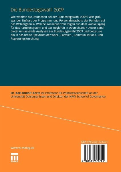 Die Bundestagswahl 2009 - Konturen des Neuen.- Die Bundestagswahl 2009 - Konturen des Neuen.- Wahlforschung.- Wählerverhalten und Wahlergebnis.- Der Wähler begegnet den Parteien.- Das fast vergessene Phänomen.- Parteienforschung.- Was stand zur Wahl 2009?.- Volksparteien unter Druck.- Regieren und Parteienwettbewerb in einem nivellierten Vielparteiensystem.- Lernen von Österreich?.- Wird das deutsche Parteiensystem "europäischer"?.- Kommunikationsforschung.- Zur Modernisierung und Professionalisierung des Wahlkampfmanagements.- Politik im "Social Web".- Das "Kanzlerduell" als Multimedia-Debatte.- The Battle for the Ballot.- Regierungsforschung.- Reduzierter Parteienwettbewerb durch kalkulierte Demobilisierung.- Das Ende der Lagerpolarisierung?.- Unpopulär aber ohne Alternative?.- Ein schwarz-gelbes Projekt?.