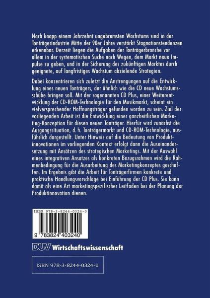 Nach knapp einem Jahrzehnt ungebremsten Wachstums sind in der Tonträgerindustrie Mitte der 90er Jahre verstärkt Stagnationstendenzen erkennbar. Derzeit liegen die Aufgaben der Tonträgerbranche vor allem in der systematischen Suche nach Wegen, dem Markt neue Impulse zu geben, und in der Sicherung des zukünftigen Marktes durch geeignete, auf langfristiges Wachstum abzielende Strategien. Dabei konzentrieren sich zuletzt die Anstrengungen auf die Entwicklung eines neuen Tonträgers, der ähnlich wie die CD neue Wachstumsschübe bringen soll. Mit der sogenannten CD Plus, einer Weiterentwicklung der CD-ROM-Technologie für den Musikmarkt, scheint ein vielversprechender Hoffnungsträger gefunden worden zu sein. Ziel dieser Arbeit ist die Entwicklung einer ganzheitlichen Marketing-Konzeption für diesen neuen Tonträger. Hierfür wird zunächst die Ausgangssituation, d. h. Tonträgermarkt und CD-ROM-Technologie, ausführlich dargestellt. Unter Hinweis auf die Bedeutung von Produktinnovationen im vorliegenden Kontext erfolgt dann die Auseinandersetzung mit Ansätzen des strategischen Marketings. Mit der Auswahl eines integrativen Ansatzes als konkreten Bezugsrahmen wird die Rahmenbedingung für die Ausarbeitung des Marketingkonzeptes geschaffen. Im Ergebnis gibt die Arbeit für Tonträgerfirmen konkrete und praktische Handlungsvorschläge bei Einführung der CD Plus. Sie kann damit als eine Art marketingspezifischer Leitfaden bei der Planung der Produktinnovation dienen.