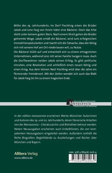Mitte des 19. Jahrhunderts: Im Dorf Flechting erben die Brüder Jakob und Lenz Farg von ihrem Vater eine Bäckerei. Doch das Erbe steht unter keinem guten Stern. Nach einem Streit gehen die Brüder getrennte Wege. Jakob erhält die Bäckerei, wird zum erfolgreichen Immobilienspekulanten und macht sich die Tatsache, dass der König sich mit seinem Hof am Ort niederlassen will, zu Nutze.