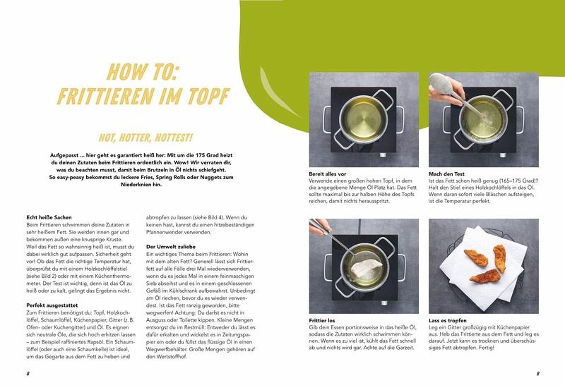 Ab in die Küche! Ob knusprige Käsetoasts, bunte Gemüsechips oder leckere Churros mit Schokosauce - dieses Teenie-Kochbuch bringt die Herzen der jungen Küchentalente dazu, höher zu schlagen. Ob als Mitbringsel für die nächste Geburtstagsparty, einen gemütlichen Filmabend mit Freund_innen oder eine chillige Sofa-Zeit - die crispy und crunchy Snacks und Sweets überzeugen bei jeder Art von Teenie-Treffen. Durch anschauliche Bilder sowie strukturierte und klar beschriebene Arbeitsschritte ist dieses Buch absolut teenietauglich. Selbst Kochanfänger_innen können ganz ohne elterliche Hilfe Airfryer, Sandwich-Maker und Pfanne zum Schwitzen bringen und die herzhaften und süßen Leckereien zubereiten.