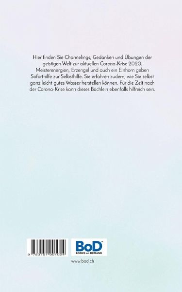 Hier finden Sie Channelings, Gedanken und Übungen der geistigen Welt zur aktuellen Corona-Krise 2020. Meisterenergien, Erzengel und auch ein Einhorn geben Soforthilfe zur Selbsthilfe. Sie erfahren zudem, wie Sie selbst ganz leicht gutes Wasser herstellen können. Für die Zeit nach der Corona-Krise kann dieses Büchlein ebenfalls hilfreich sein.