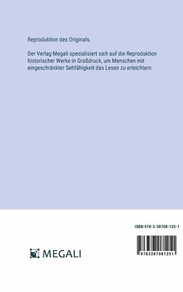 Reproduktion des Originals. Der Verlag Megali spezialisiert sich auf die Reproduktion historischer Werke in Großdruck, um Menschen mit eingeschränkter Sehfähigkeit das Lesen zu erleichtern.