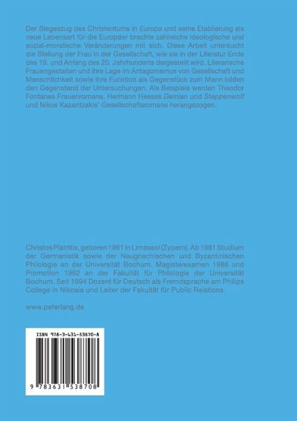 Der Siegeszug des Christentums in Europa und seine Etablierung als neue Lebensart für die Europäer brachte zahlreiche ideologische und sozial-moralische Veränderungen mit sich. Diese Arbeit untersucht die Stellung der Frau in der Gesellschaft, wie sie in der Literatur Ende des 19. und Anfang des 20. Jahrhunderts dargestellt wird. Literarische Frauengestalten und ihre Lage im Antagonismus von Gesellschaft und Menschlichkeit sowie ihre Funktion als Gegenstück zum Mann bilden den Gegenstand der Untersuchungen. Als Beispiele werden Theodor Fontanes Frauenromane, Hermann Hesses Demian und Steppenwolf und Nikos Kazantzakis' Gesellschaftsromane herangezogen.