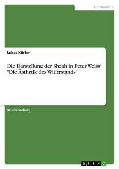 Studienarbeit aus dem Jahr 2023 im Fachbereich Germanistik - Neuere Deutsche Literatur, Note: 1.3, Rheinisch-Westfälische Technische Hochschule Aachen (Institut für Germanistische und Allgemeine Literaturwissenschaft), Sprache: Deutsch, Abstract: Diese Arbeit unersucht, wie die Shoah in der "Ästhetik des Widerstands" dargestellt wird, beziehungsweise welche Mittel und Methoden Weiss dafür benutzt. Als Erstes werden zwei von dem Geschichtswissenschaftler Michael Rothberg zusammengefasste Ansätze in der Diskussion über die Darstellbarkeit der Shoah in der Literatur vorgestellt sowie auch seine eigene Position innerhalb des Diskurses. Der Kern der Arbeit bildet die Untersuchung über die Darstellungsstrategien, die Peter Weiss benutzt, mit denen er die Shoah in der ÄdW thematisiert. Beginnend mit der Vorstellung des ästhetischen Prinzips der Indirektheit folgt die Betrachtung des Vaters des Erzählers und seiner Reaktionen auf den faschistischen Schrecken. Anschließend folgt die Darstellung der Mutter des Erzählers und ihrer im Kontrast zum Vater stehenden Reaktion in Form ihres Verstummens und ihrer Visionen. Das Ende des Kapitels über die Darstellungsstrategien bildet eine Untersuchung zu einem programmatischen Aspekt, den Peter Weiss zur Thematisierung der Shoah im Roman aufstellt, in der auch auf eine These Rothbergs zurückgegriffen wird. Bevor die Arbeit in einem abschließenden Fazit endet, wird Peter Weiss¿ persönliches Verhältnis zur Shoah und dessen Darstellung in der ÄdW und in seinem 1964 verfassten Text Meine Ortschaft thematisiert und miteinander verglichen. Fundament dieser Arbeit ist selbstverständlich eine Ausgabe des von Peter Weiss zwischen 1975 und 1981 in drei Bänden veröffentlichten Romans "Die Ästhetik des Widerstands". Michael Rothbergs Abriss des Diskurses über die Darstellbarkeit der Shoah und seine weiterführende Analyse finden sich in seiner Monografie "Traumatic Realism. The Demands of Holocaust Representation". Für die Untersuchung der Reaktionen der Eltern auf die Erlebnisse ihrer Flucht und deren Gestaltung und Funktion erwiesen sich verschiedene Beiträge des Germanisten Michael Hofmann sowie Günter Butzers Monografie "Fehlende Trauer" als besonders hilfreich.