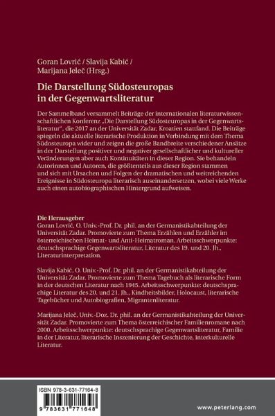 Der Sammelband versammelt Beiträge der internationalen literaturwissenschaftlichen Konferenz "Die Darstellung Südosteuropas in der Gegenwartsliteratur", die 2017 an der Universität Zadar, Kroatien stattfand. Die Beiträge spiegeln die aktuelle literarische Produktion in Verbindung mit dem Thema Südosteuropa wider und zeigen die große Bandbreite verschiedener Ansätze in der Darstellung positiver und negativer gesellschaftlicher und kultureller Veränderungen aber auch Kontinuitäten in dieser Region. Sie behandeln Autorinnen und Autoren, die größtenteils aus dieser Region stammen und sich mit Ursachen und Folgen der dramatischen und weitreichenden Ereignisse in Südosteuropa literarisch auseinandersetzen, wobei viele Werke auch einen autobiographischen Hintergrund aufweisen.