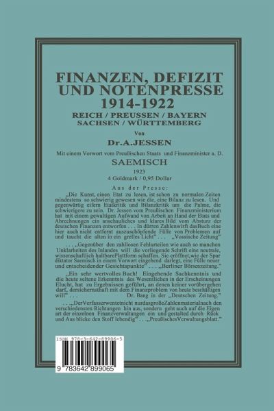 I. Die Papiermarkwirtschaft.- Der Papieretat..- Die Fondskontrolle..- Die Kontrolle bei sächlichen Fonds..- Die Kontrolle persönlicher Fonds..- Vorauszahlung und Inflation..- Die Zahl der deutschen Beamten und Angestellten..- Die Bedeutung der Zahlungstermine für die Staatskasse..- II. Die Reichsfinanzverwaltung.- Der Reichshaushalt..- Die Reichshoheitsverwaltung..- Eisenbahn und Post..- Länder und Gemeinden..- Schuld und Tribute..- Die Gesamtausgaben des Reiches..- Die Gesamteinnahmen des Reiches..- Die Notenpresse..- Der Aufgabenkreis des Reichsfinanz-ministers..- III. Der Richtetat.- Dollar oder Binnenmark?.- Die deutsche Steuerkraft..- Die Überweisungstechnik..- Der Finanzausgleich..- Die Steuerverwaltung..- Der Aufbau des Richtetats..- Richtetat und Richtzahl..- Ausblick. S..
