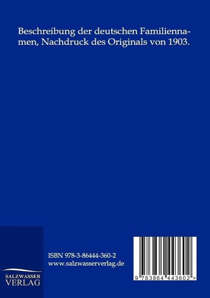 Beschreibung der deutschen Familiennamen, Nachdruck des Originals von 1903.
