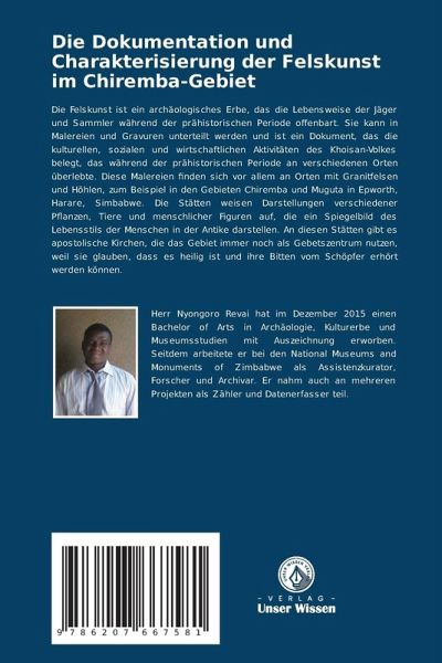 Die Felskunst ist ein archäologisches Erbe, das die Lebensweise der Jäger und Sammler während der prähistorischen Periode offenbart. Sie kann in Malereien und Gravuren unterteilt werden und ist ein Dokument, das die kulturellen, sozialen und wirtschaftlichen Aktivitäten des Khoisan-Volkes belegt, das während der prähistorischen Periode an verschiedenen Orten überlebte. Diese Malereien finden sich vor allem an Orten mit Granitfelsen und Höhlen, zum Beispiel in den Gebieten Chiremba und Muguta in Epworth, Harare, Simbabwe. Die Stätten weisen Darstellungen verschiedener Pflanzen, Tiere und menschlicher Figuren auf, die ein Spiegelbild des Lebensstils der Menschen in der Antike darstellen. An diesen Stätten gibt es apostolische Kirchen, die das Gebiet immer noch als Gebetszentrum nutzen, weil sie glauben, dass es heilig ist und ihre Bitten vom Schöpfer erhört werden können.