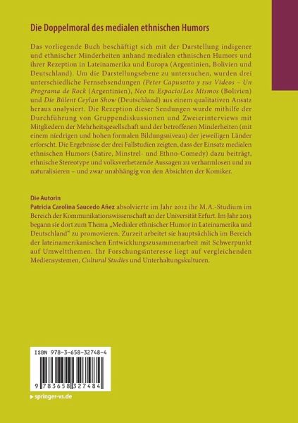 Das vorliegende Buch beschäftigt sich mit der Darstellung indigener und ethnischer Minderheiten anhand medialen ethnischen Humors und ihrer Rezeption in Lateinamerika und Europa (Argentinien, Bolivien und Deutschland). Um die Darstellungsebene zu untersuchen, wurden drei unterschiedliche Fernsehsendungen (Peter Capusotto y sus Videos - Un Programa de Rock (Argentinien), Neo tu Espacio/Los Mismos (Bolivien) und Die Bülent Ceylan Show (Deutschland) aus einem qualitativen Ansatz heraus analysiert. Die Rezeption dieser Sendungen wurde mithilfe der Durchführung von Gruppendiskussionen und Zweierinterviews mit Mitgliedern der Mehrheitsgesellschaft und der betroffenen Minderheiten (mit einem niedrigen und hohen formalen Bildungsniveau) der jeweiligen Länder erforscht. Die Ergebnisse der drei Fallstudien zeigten, dass der Einsatz medialen ethnischen Humors (Satire, Minstrel- und Ethno-Comedy) dazu beiträgt, ethnische Stereotype und volksverhetzende Aussagen zu verharmlosen und zu naturalisieren - und zwar unabhängig von den Absichten der Komiker.