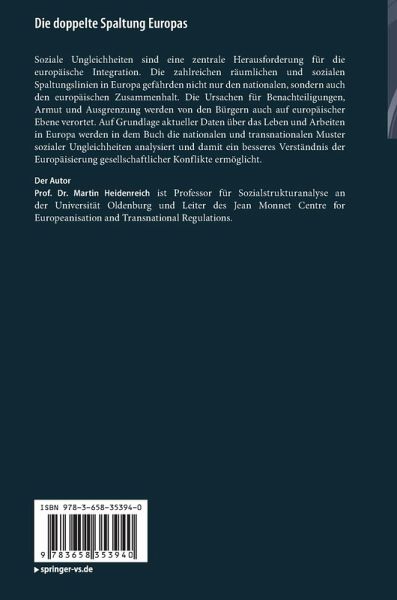 Soziale Ungleichheiten auf nationaler und europäischer Ebene.- Daten und Methoden.- Zwischen Konvergenz und Agglomeration. Wirtschaftliche Disparitäten in der EU.- Europäische Arbeitsmärkte zwischen Segmentierung und Aktivierung.- Lohnungleichheiten in der EU.- Europäisierung der Einkommensungleichheit vor und während der Krise in der Eurozone: inter-, supra- und transnationale Perspektiven.- Kumulierung und Konzentration von Armut und Ausgrenzung.- Bildung, Qualifikationen und soziale Mobilität.- Der gesellschaftliche Zusammenhalt in Europa. Zwischen europaweiter Konvergenz und sozialer Spaltung.- Anhang: Die verwendeten Variablen, ihre Operationalisierung und ihre Quellen.