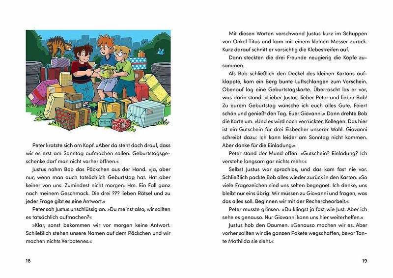 Justus, Peter und Bob sind beste Freunde und Detektive! Zusammen haben die drei ??? schon viele knifflige Fälle gelöst.Eindeutig ein Missverständnis, oder? Wer hat den drei ??? diese seltsame Einladungskarte geschickt? Justus, Peter und Bob sind zu einer Geburtstagsparty auf dem Schrottplatz eingeladen. Seltsam! Es hat doch keiner von ihnen Geburtstag. Und wer hat ihnen all die Geschenke geschickt? Die drei ??? befragen die Bewohner von Rocky Beach. Schließlich haben sie eine heiße Spur. Sie führt die Detektive zu einem Event-Team, das eine große Feier vorbereitet. Die Freunde haben einen Plan, wie sie die Betrüger überlisten! Ein perfektes Geburtstagsgeschenk.
