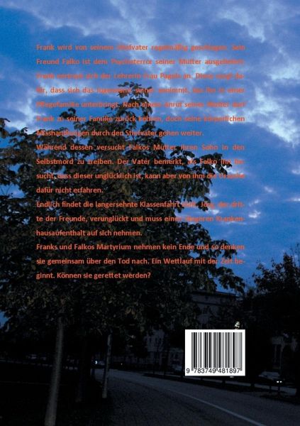 Frank wird von seinem Stiefvater regelmäßig geschlagen. Sein Freund Falko ist dem Psychoterror seiner Mutter ausgeliefert. Frank vertraut sich der Lehrerin Frau Pagels an. Diese sorgt dafür, dass sich das Jugendamt seiner annimmt, das ihn in einer Pflegefamilie unterbringt. Nach einem Anruf seiner Mutter darf Frank zu seiner Familie zurückkehren, doch seine körperlichen Misshandlungen durch den Stiefvater gehen weiter. Während dessen versucht Falkos Mutter ihren Sohn in den Selbstmord zu treiben. Der Vater bemerkt, als Falko ihn besucht, dass dieser unglücklich ist, kann aber von ihm die Ursache dafür nicht erfahren.Endlich findet die langersehnte Klassenfahrt statt. Jörg, der dritte der Freunde, verunglückt und muss einen längeren Krankenhausaufenthalt auf sich nehmen. Franks und Falkos Martyrium nehmen kein Ende und so denken sie gemeinsam über den Tod nach. Ein Wettlauf mit der Zeit beginnt. Können sie gerettet werden?