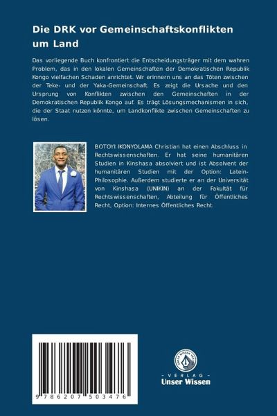 Das vorliegende Buch konfrontiert die Entscheidungsträger mit dem wahren Problem, das in den lokalen Gemeinschaften der Demokratischen Republik Kongo vielfachen Schaden anrichtet. Wir erinnern uns an das Töten zwischen der Teke- und der Yaka-Gemeinschaft. Es zeigt die Ursache und den Ursprung von Konflikten zwischen den Gemeinschaften in der Demokratischen Republik Kongo auf. Es trägt Lösungsmechanismen in sich, die der Staat nutzen könnte, um Landkonflikte zwischen Gemeinschaften zu lösen.