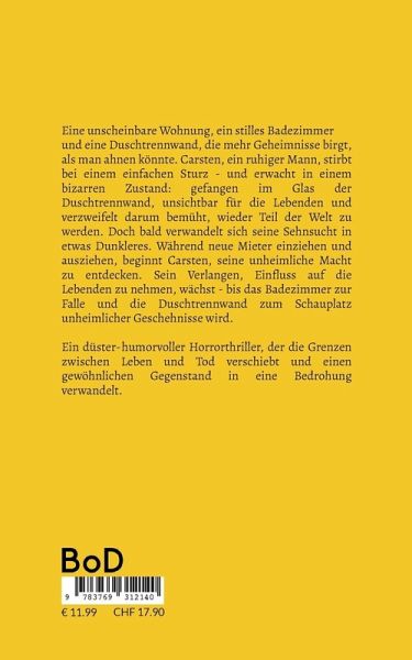 Eine unscheinbare Wohnung, ein stilles Badezimmer und eine Duschtrennwand, die mehr Geheimnisse birgt, als man ahnen könnte. Carsten, ein ruhiger Mann, stirbt bei einem einfachen Sturz - und erwacht in einem bizarren Zustand: gefangen im Glas der Duschtrennwand, unsichtbar für die Lebenden und verzweifelt darum bemüht, wieder Teil der Welt zu werden. Doch bald verwandelt sich seine Sehnsucht in etwas Dunkleres. Während neue Mieter einziehen und ausziehen, beginnt Carsten, seine unheimliche Macht zu entdecken. Sein Verlangen, Einfluss auf die Lebenden zu nehmen, wächst - bis das Badezimmer zur Falle und die Duschtrennwand zum Schauplatz unheimlicher Geschehnisse wird. Ein düster-humorvoller Horrorthriller, der die Grenzen zwischen Leben und Tod verschiebt und einen gewöhnlichen Gegenstand in eine Bedrohung verwandelt.