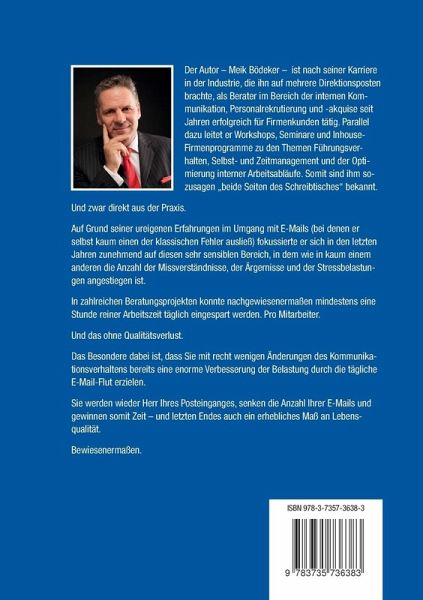 Sie haben ein Problem. Und zwar ganz offensichtlich mit Ihrer E-Mail-Flut, denn sonst wären Sie hier nicht gelandet. Wenn Sie sich dies klarmachen, haben Sie den ersten Schritt bereits bewältigt.Treffen einige der folgenden Aussagen auf Sie zu?-Ich stehe meinem E-Mail-Account oftmals hilflos gegenüber.-Meine erste und letzte E-Mail des Tages schreibe ich nicht im Büro, sondern zu Hause.-Ich schaue ständig in mein E-Mail-Postfach - sogar dann, wenn ich nicht antworten kann.-Ich habe mehr E-Mail-Kontakte als Gesprächskontakte.-Mein Arbeitsablauf wird hauptsächlich von E-Mails bestimmt.-Ein oder zwei Tage komplett ohne E-Mails zu arbeiten, kann ich mir gar nicht vorstellen. -Ich lese und beantworte Firmen-E-Mails auch nach Feierabend, am Wochenende, an Feiertagen. Sogar im Urlaub...-Ich habe ganz oft das Gefühl, zu viele Informationen zu erhalten, ohne diese in Ruhe verarbeiten zu können. Gleichzeitig habe ich das Gefühl, nicht ausreichend informiert zu sein.-Mehrmals pro Woche bekomme ich firmeninterne E-Mails, von denen ich vorher schon weiß, dass sie mich "runterziehen" werden-Ich habe schon lange nicht mehr mehrere Stunden ohne Unterbrechung konzentriert an einer einzigen Sache gearbeitet.Wenn Sie bei fünf oder mehr dieser 10 Punkte genickt haben, ist Ihr Problem sogar sehr ernst - es zeigt Tendenzen eines Suchtverhaltens.Wie wäre es, wenn Sie (oder Ihre Mitarbeiter) jeden Tag eine reine Arbeitsstunde mehr Zeit hätten?Eine ganze Stunde. Entspannter wären. Sich das Betriebsklima verbessern würde. Sie ein enormes Sparpotential hätten (überlegen Sie: eine Stunde pro Mitarbeiter - wie viele Mitarbeiter hat Ihr Unternehmen/Ihre Abteilung?)Der Autor fasst in diesem Buch mit seiner leichten und ansprechenden Erzählweise die Ergebnisse zahlloser Firmentrainings und persönlicher Coachings zusammen und zeigt Ihnen, wie Sie mit oftmals recht kleinen Veränderungen Ihres Kommunikationsverhaltens enorme Erfolge erzielen.Und zwar direkt aus der Praxis.