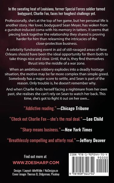 "If Jack Reacher were a woman, he'd be Charlie Fox." Lee Child In the sweating heat of Louisiana, former Special Forces soldier turned bodyguard, Charlie Fox, faces her toughest challenge yet. Professionally, she's at the top of her game, but her personal life is another story. Her lover, bodyguard Sean Meyer, has woken from a gunshot-induced coma with his memory in tatters. It seems that piecing back together the relationship they shared is proving harder for him than relearning the intricacies of the close protection business. Working with Sean again was never going to be easy for Charlie, either, but a celebrity fundraising event in aid of still-ravaged areas of New Orleans should have been the ideal opportunity for them both to take things nice and slow. Until, that is, they find themselves thrust into the middle of a war zone. When an ambitious robbery explodes into a deadly hostage situation, the motive may be far more complex than simple greed. Somebody has a major score to settle, and Sean is part of the reason. Only trouble is, he doesn't remember why. And when Charlie finds herself facing a nightmare from her own past, she realises she can't rely on Sean to watch her back. This time, she's got to fight it out on her own. Charlie may be outnumbered and outgunned, but one thing is for certain in this fast paced page turner-she's never outfoxed. If you like strong independent female protagonists, who will take down the bad guys without hesitation but who are still human enough to care, then Charlie Fox is definitely for you. Another fantastic read in a series filled with twists and turns. Highly recommended by readers, who can't wait for the next instalment.
