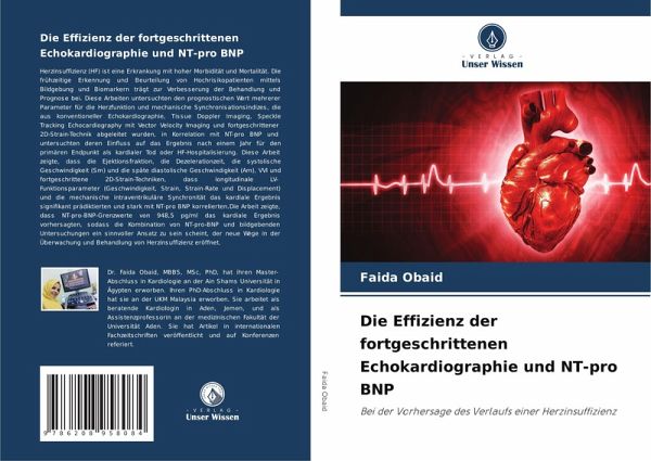 Herzinsuffizienz (HF) ist eine Erkrankung mit hoher Morbidität und Mortalität. Die frühzeitige Erkennung und Beurteilung von Hochrisikopatienten mittels Bildgebung und Biomarkern trägt zur Verbesserung der Behandlung und Prognose bei. Diese Arbeiten untersuchten den prognostischen Wert mehrerer Parameter für die Herzfunktion und mechanische Synchronisationsindizes, die aus konventioneller Echokardiographie, Tissue Doppler Imaging, Speckle Tracking Echocardiography mit Vector Velocity Imaging und fortgeschrittener 2D-Strain-Technik abgeleitet wurden, in Korrelation mit NT-pro BNP und untersuchten deren Einfluss auf das Ergebnis nach einem Jahr für den primären Endpunkt als kardialer Tod oder HF-Hospitalisierung. Diese Arbeit zeigte, dass die Ejektionsfraktion, die Dezelerationzeit, die systolische Geschwindigkeit (Sm) und die späte diastolische Geschwindigkeit (Am), VVI und fortgeschrittene 2D-Strain-Techniken, dass longitudinale LV-Funktionsparameter (Geschwindigkeit, Strain, Strain-Rate und Displacement) und die mechanische intraventrikuläre Synchronität das kardiale Ergebnis signifikant prädiktierten und stark mit NT-pro BNP korrelierten.Die Arbeit zeigte, dass NT-pro-BNP-Grenzwerte von 948,5 pg/ml das kardiale Ergebnis vorhersagten, sodass die Kombination von NT-pro-BNP und bildgebenden Untersuchungen ein sinnvoller Ansatz zu sein scheint, der neue Wege in der Überwachung und Behandlung von Herzinsuffizienz eröffnet.
