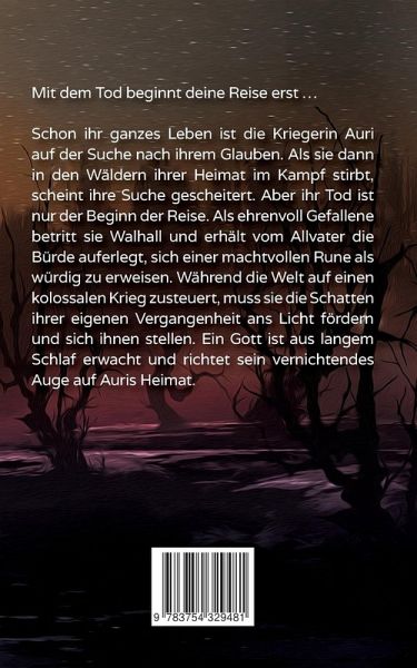Mit dem Tod beginnt deine Reise erst ...Schon ihr ganzes Leben ist die Kriegerin Auri auf der Suche nach ihrem Glauben. Als sie dann in den Wäldern ihrer Heimat im Kampf stirbt, scheint ihre Suche gescheitert. Aber ihr Tod ist nur der Beginn der Reise. Als ehrenvoll Gefallene betritt sie Walhall und erhält vom Allvater die Bürde auferlegt, sich einer machtvollen Rune als würdig zu erweisen. Während die Welt auf einen kolossalen Krieg zusteuert, muss sie die Schatten ihrer eigenen Vergangenheit ans Licht fördern und sich ihnen stellen. Ein Gott ist aus langem Schlaf erwacht und richtet sein vernichtendes Auge auf Auris Heimat.