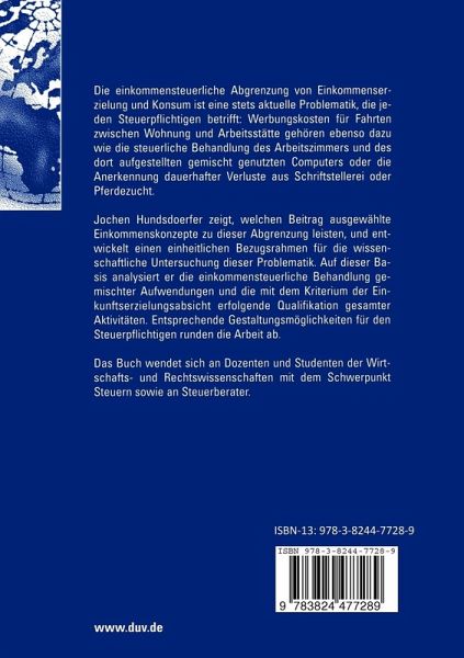 Die einkommensteuerliche Abgrenzung von Einkommenserzielung und Konsum ist eine stets aktuelle Problematik, die jeden Steuerpflichtigen betrifft: Werbungskosten für Fahrten zwischen Wohnung und Arbeitsstätte gehören ebenso dazu wie die steuerliche Behandlung des Arbeitszimmers und des dort aufgestellten, gemischt genutzten Computers oder die Anerkennung dauerhafter Verluste aus Schriftstellerei oder Pferdezucht. Jochen Hundsdoerfer zeigt, welchen Beitrag ausgewählte Einkommenskonzepte zu dieser Abgrenzung leisten, und entwickelt einen einheitlichen Bezugsrahmen für die wissenschaftliche Untersuchung dieser Problematik. Auf dieser Basis analysiert er die einkommensteuerliche Behandlung gemischter Aufwendungen und die mit dem Kriterium der Einkunftserzielungsabsicht erfolgende Qualifikation gesamter Aktivitäten. Entsprechende Gestaltungsmöglichkeiten für den Steuerpflichtigen runden die Arbeit ab.