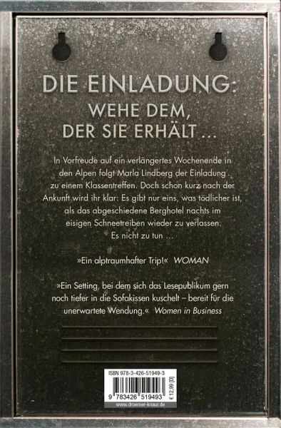 In Vorfreude auf ein verlängertes Wochenende in den Alpen folgt Marla Lindberg der Einladung zu einem Klassentreffen. Doch schon kurz nach der Ankunft wird ihr klar: Es gibt nur eins, was tödlicher ist, als das abgeschiedene Berghotel nachts im eisigen Schneetreiben wieder zu verlassen. Es nicht zu tun ...