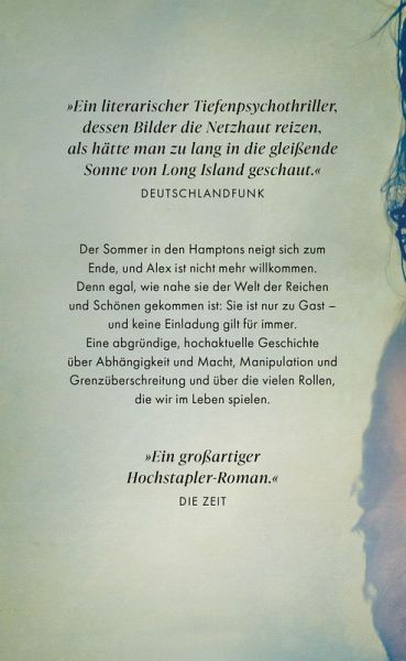 Der Sommer in den Hamptons neigt sich dem Ende zu, und Alex ist nicht mehr willkommen. Denn egal, wie nahe sie der Welt der Reichen und Schönen gekommen ist: Sie ist nur zu Gast - und keine Einladung gilt für immer. Ein Fehltritt bei einem Dinner, und schon setzt Simon, der ältere Mann, dem Alex Gesellschaft geleistet hat, sie vor die Tür. Und so geistert sie durch Gärten und über Dünen, während die Sonne vom Himmel brennt. Darin geübt, sich den Wünschen und Erwartungen anderer anzupassen, driftet Alex von einer Zufallsbekanntschaft zur nächstenund hinterlässt dabei eine Spur der Zerstörung die nur ein Ziel kennt: Simons Gartenparty am Ende der Woche.