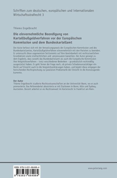 Der Autor befasst sich mit der Verwaltungspraxis der Europäischen Kommission und des Bundeskartellamtes, Kartellbußgeldverfahren einvernehmlich mit den Parteien zu beenden. Er untersucht diese sogenannten Settlements auf ihre Vereinbarkeit mit rechtsstaatlichen Grundsätzen sowie strafrechtlichen und -prozessualen Garantien. Der Autor gelangt zu dem Ergebnis, dass sowohl das Bundeskartellamt als auch die Europäische Kommission ihre Vergleichsverfahren - trotz verschiedener Bedenken - grundsätzlich rechtmäßig ausgestaltet haben. Er geht ferner der Frage nach, ob private Schadensersatzkläger ein Recht auf Einsicht auch in die Vergleichserklärungen haben, und bejaht diese entgegen der herrschenden Rechtsprechung zur parallelen Problematik der Einsicht in die Kronzeugendokumente.